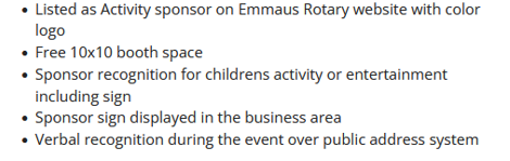 <div>2026 EMMAUS ROTARY SUMMER FESTIVAL ACTIVITY AND EVENT SPONSOR</div>
